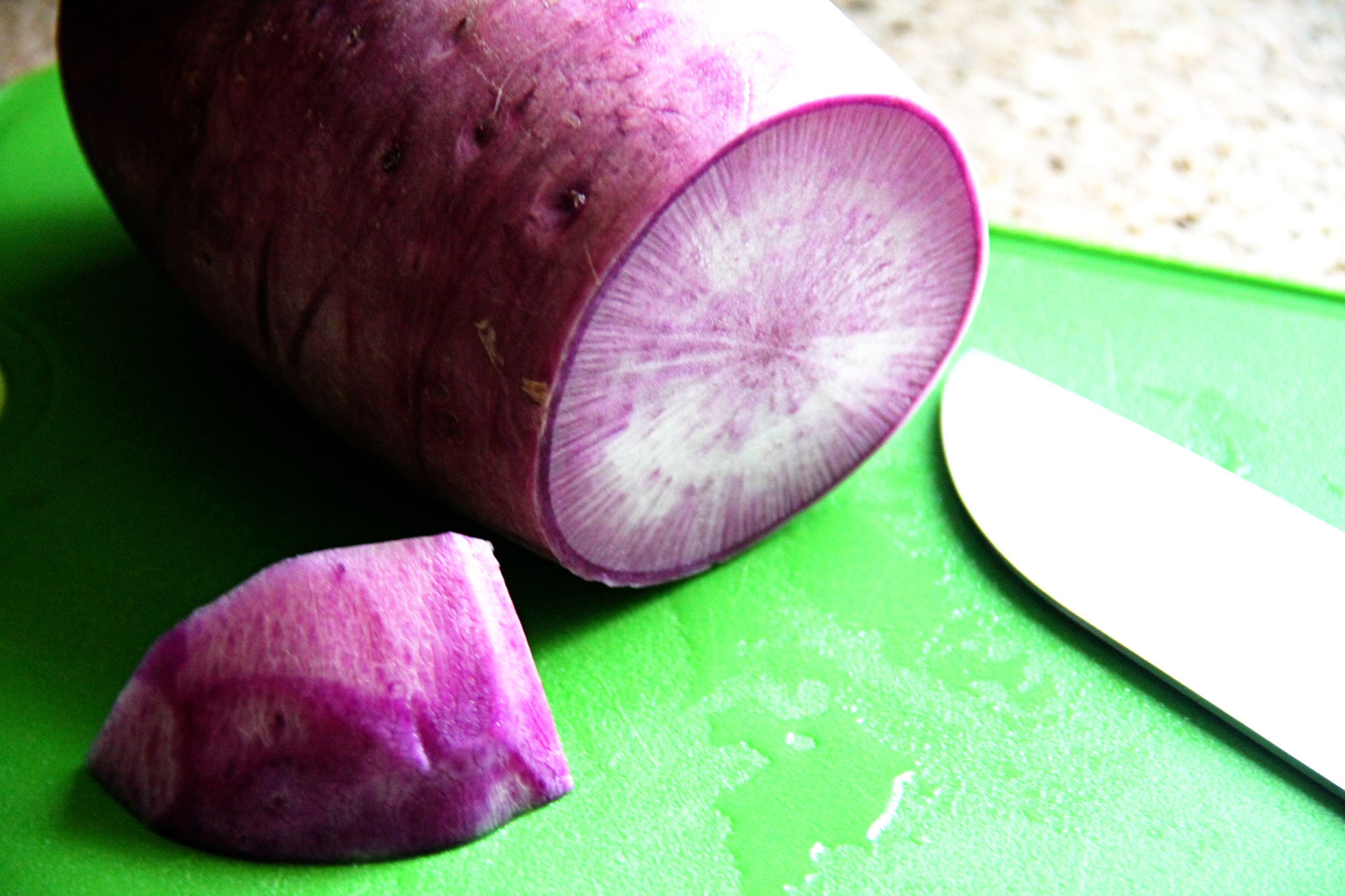 참고로 일년전에 이 보라색 무우로 깍두기를 담궜는데, 정말 맛이 없어서 겨우 먹었어요. 달랑 두개 담군 깍두기였는데요.