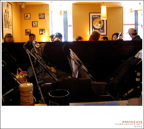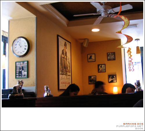 모든게 개로 장식되어있는 내부. (앗, 찰리 채플린도 있군) 늦잠 자고 일어난 동네 사람들이 많은듯 했다.
