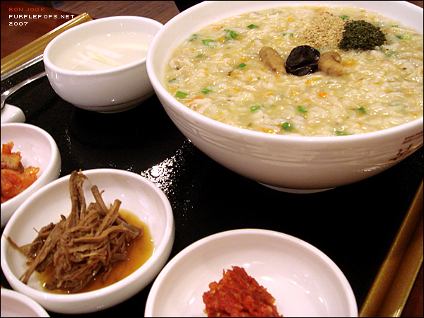 요즘들어 한국음식점 체인들이 많이 수입(?)되고 있는데 본죽도 그들중 하나란걸 이번에 한국 나갔을때 알게 되었음. Flushing에 있는 본죽 내부. 문을 들어서는 순간 한국에 있는 착각을 할정도로 분위기가 한국적이었다. -.-; (깨끗하고 서비스도 무지 좋다는 말)