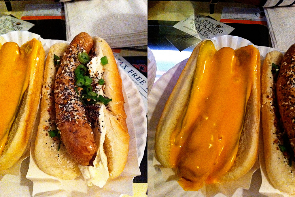 일단, 소세지를 튀긴다. 케첩 머스터드같은 평범한 토핑 대신 크림치즈, 아보카도 등 생각지도 못한 토핑을 얹어 모두 열여섯 종류의 핫도그를 만들어낸다. (ketchup, mustard, sauerkraut 등도 넣어달라 할 수 있음)