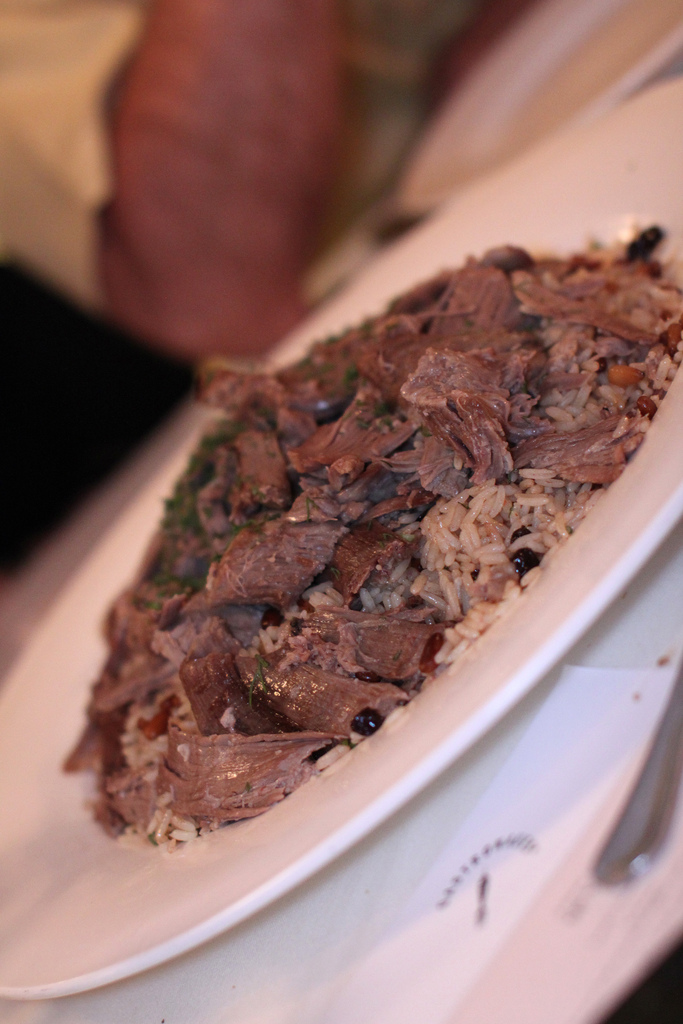 Stuffed Lamb Ribs served over rice with pine nuts, currants