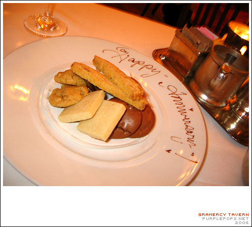 Union Square Cafe에서도 느낀거지만, 이곳의 서비스는 극찬할 필요가 있다. 어쩌면 Union Square Cafe보다 더 좋을지도.. 정말 날이 날이니만큼 좋은선택을 했단 생각을 하기도. 결혼기념일이라고 하니 샴페인 두잔을 테이블에 앉자마자 가져다준다. 특별한 날이라면 예약할때 꼭 얘기를 해두길..