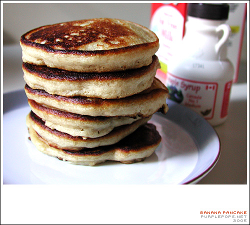 팬케익 반죽에 원하는만큼의 바나나를 얇게 썰어 넣어 구우면 됨.