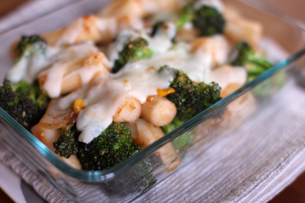 2. 오븐용기에 1번을 담고 위에 모짜렐라 치즈를 뿌린후 치즈가 노릇하게 변할때까지 굽는다.