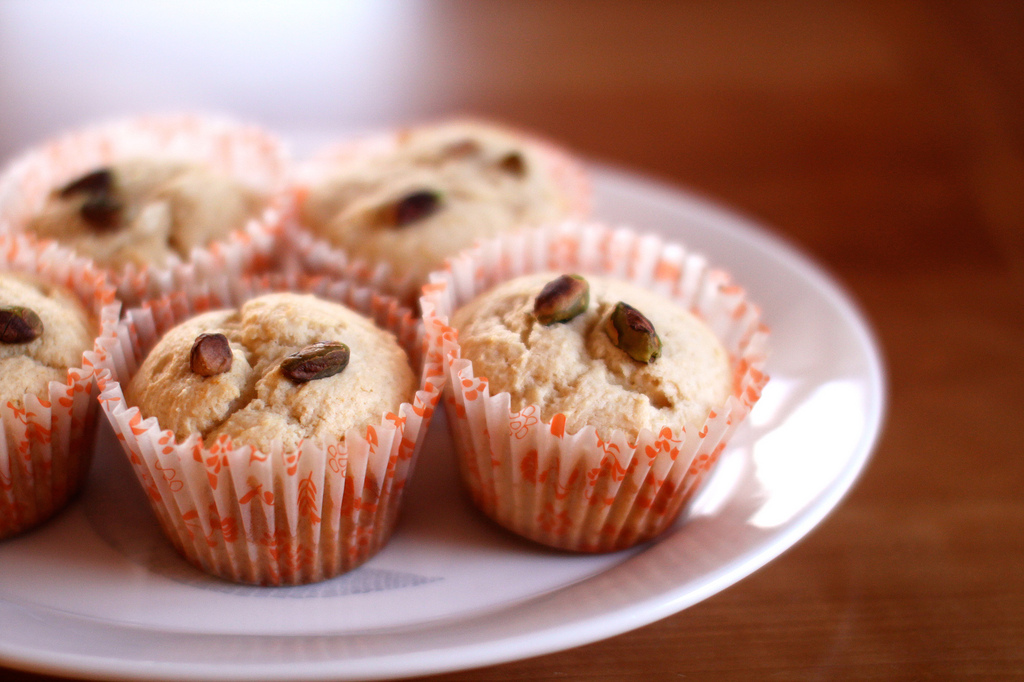 3. 마른 가루들을 2번에 더해 반죽을 잘 섞은후 머핀틀에 떠서 넣는다. 위에 아몬드나 너트류를 뿌려 장식한다. 25분정도 오븐에 굽는다.