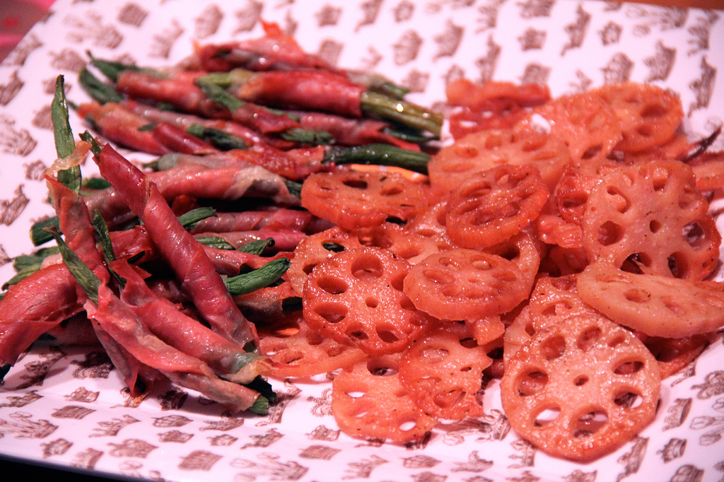1. 연근을 올리브오일에 버무리고 소금과 다른 향신료등으로 간을 한 후 바삭해질때까지 오븐에 굽는다.