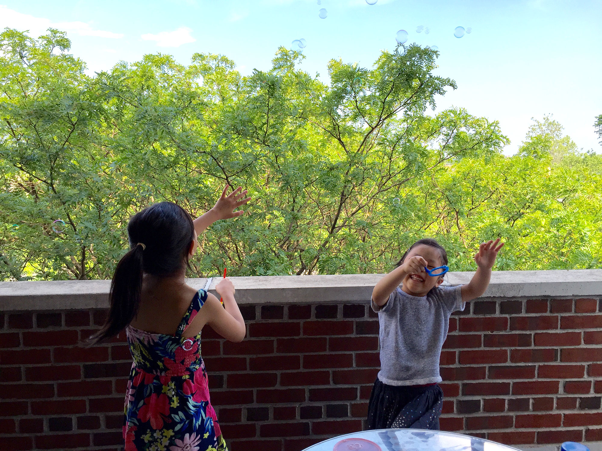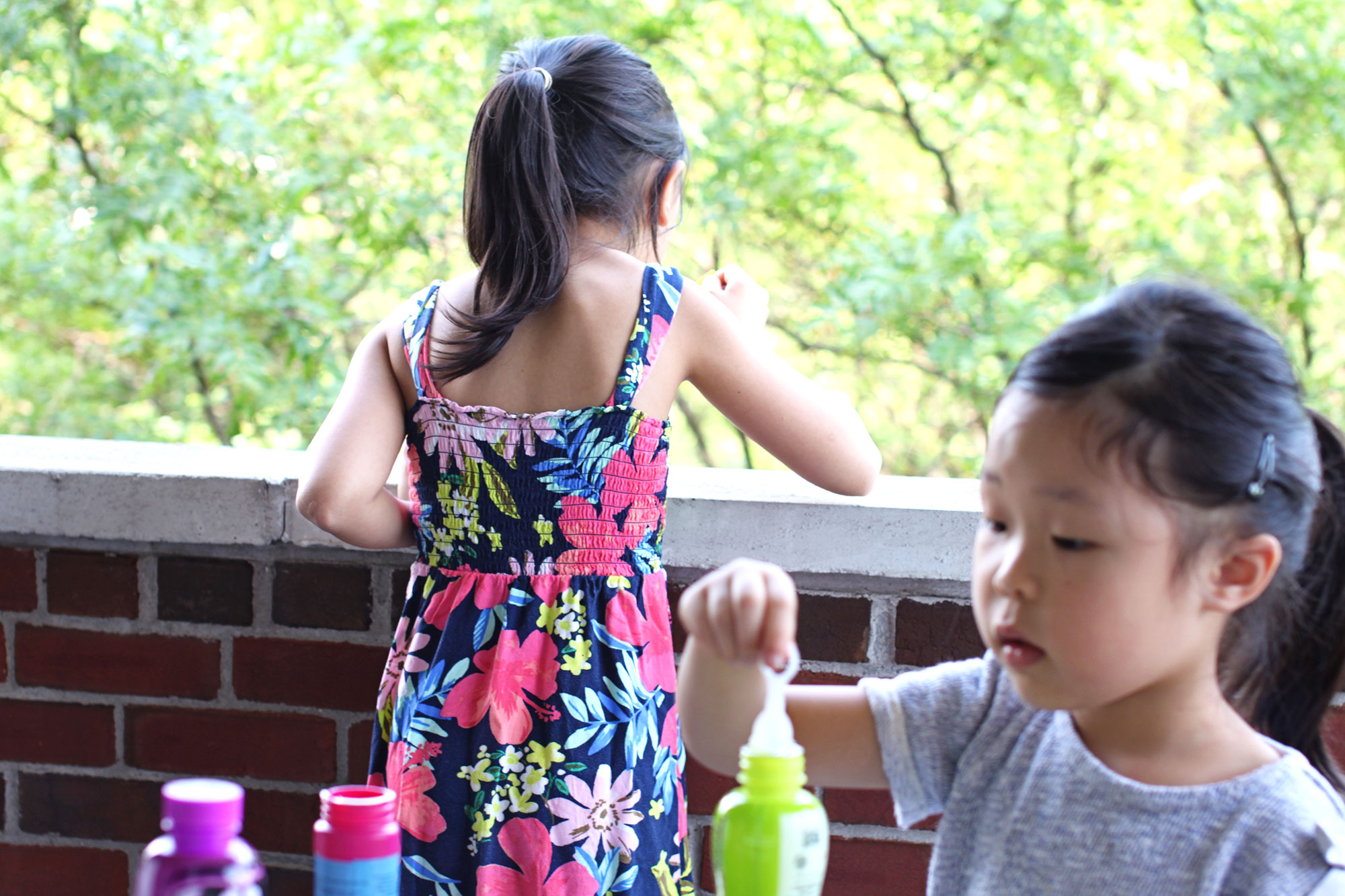 이젠 일일이 꺼내주지 않아도 자기가 버블놀이를 척척 셋업 할 정도가 된 큰언니. 그녀의 깔끔한 성격을 믿고 맡김.