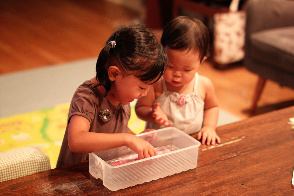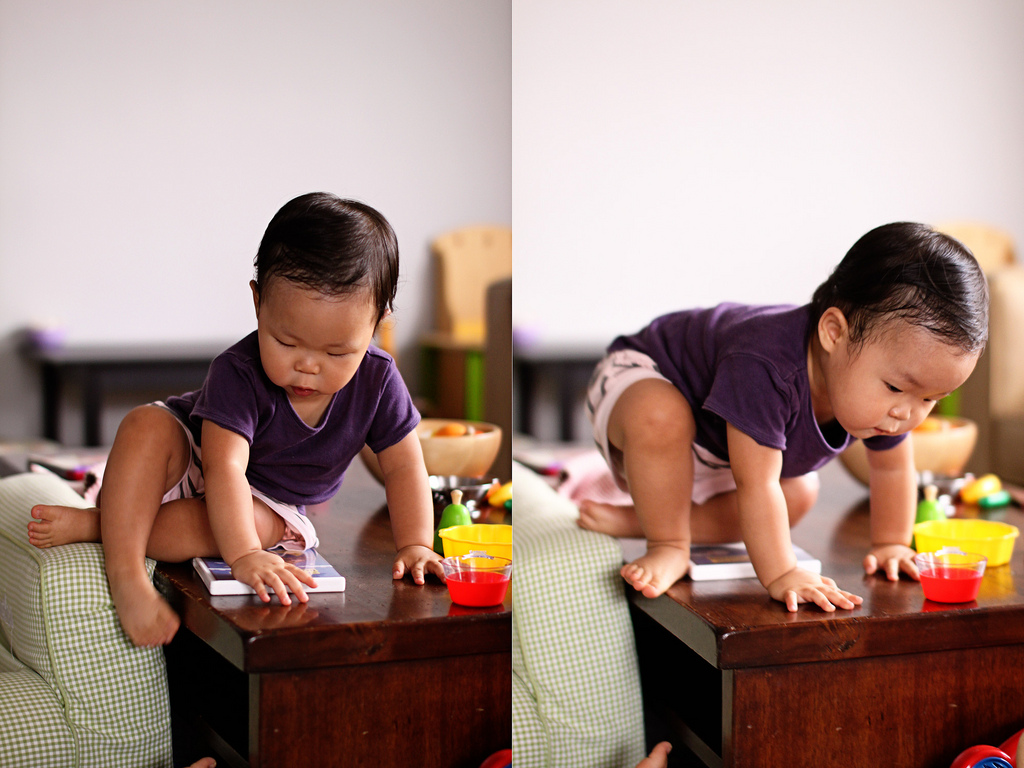 둘째는 승빈이처럼 테이블에 마구 올라가 떨어지기도 하고, 언니꺼 뺏느라 정신도 없고..