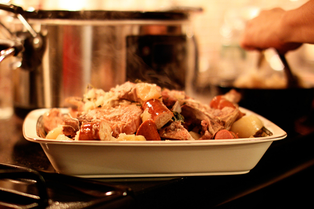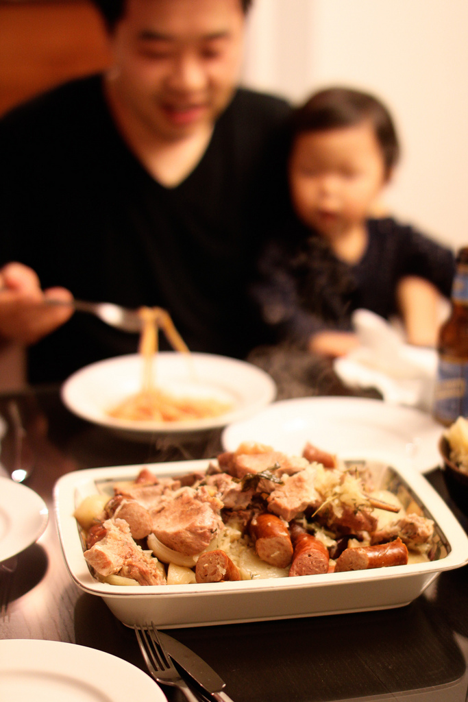 소세지와 돼지고기가 듬뿍 들어간 choucroute. 스읍~