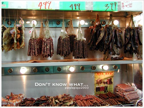 안녕하세요… 정말 매일매일 눈팅만하는 싱가폴에사는 팬입니다. 저기 걸려있는 쏘세지 처럼 생긴거 중국식 소세지예요. 맛이 참 달아요. 국수 볶을 때 많이들 넣어서 먹어요. 전 너무 느끼해서 다 골라내고 먹지요. 참 저개구리 여기서는 다리 몸통 다 분리해서 파는데… 이쁘게 생긴 아가씨가 개구리 다리 잘도 먹어요…