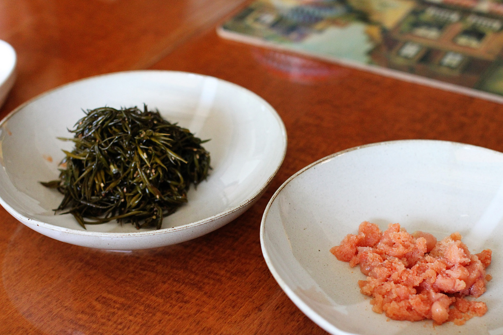 아래는 톳나물과 알 톡톡 튀는 명란젖..