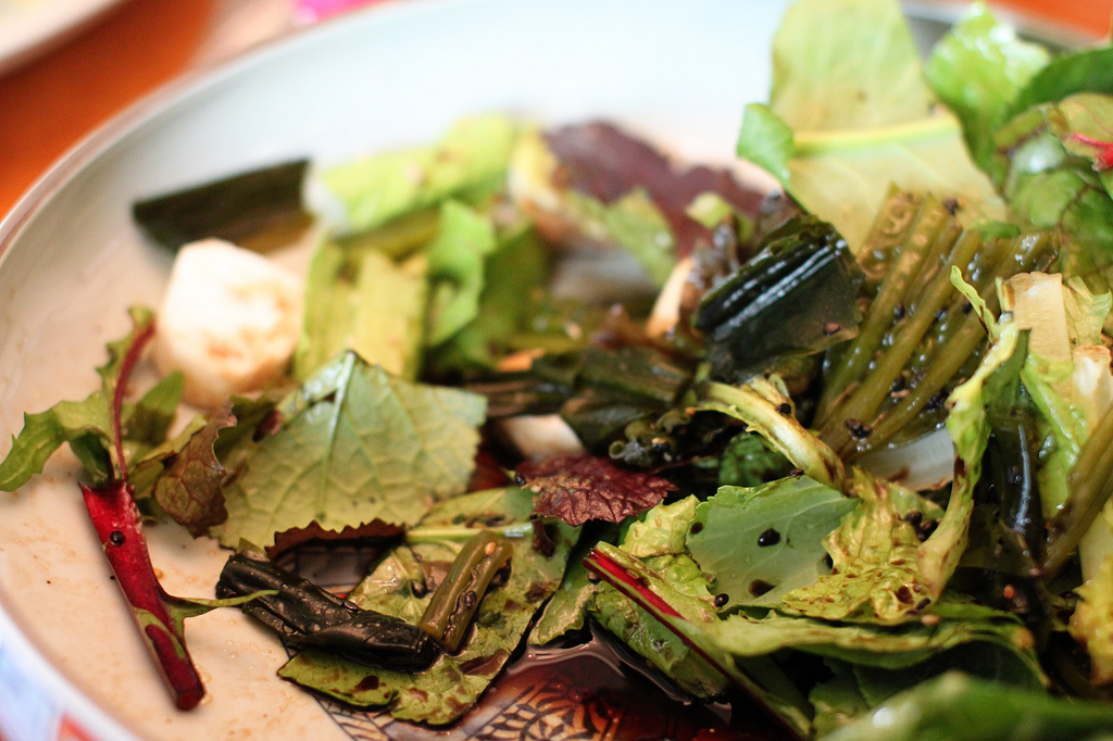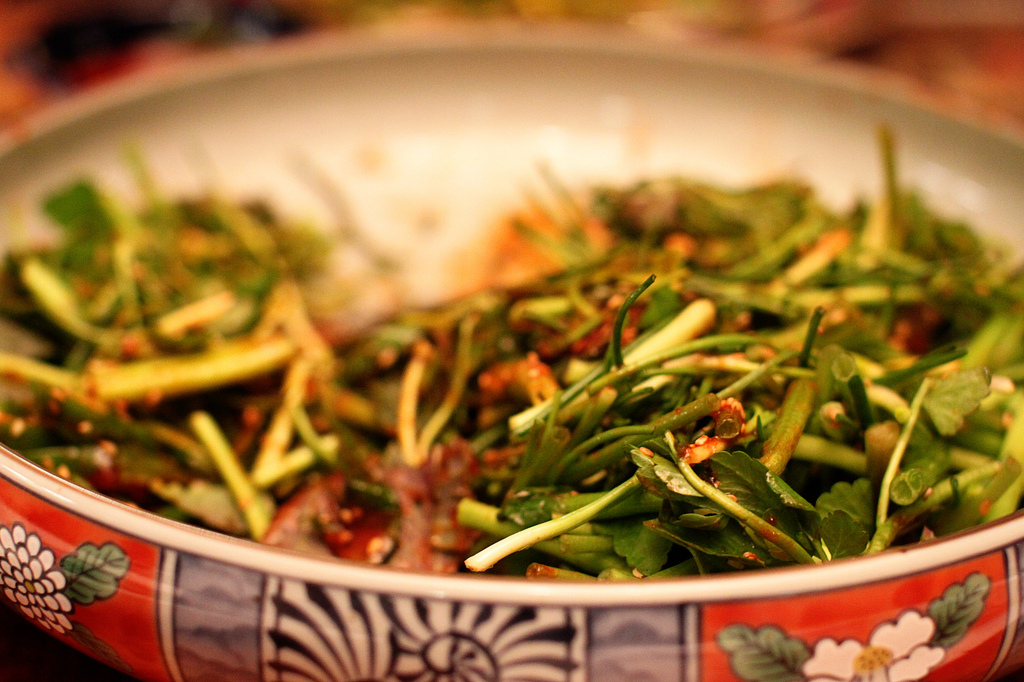 미나리, 부추 등 각종 봄채소가 들어간 샐러드…