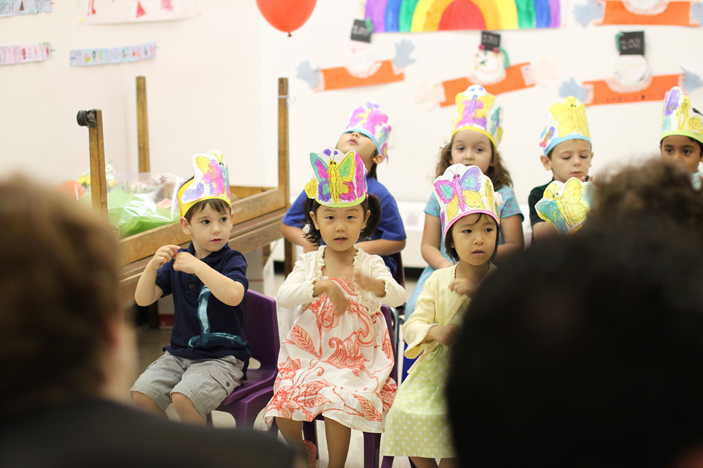 아침반 오후반이 졸업식을 이틀에 걸쳐 따로 함. 이게 아침반. 그동안 뭘 배웠는지 노래로 보여줌.