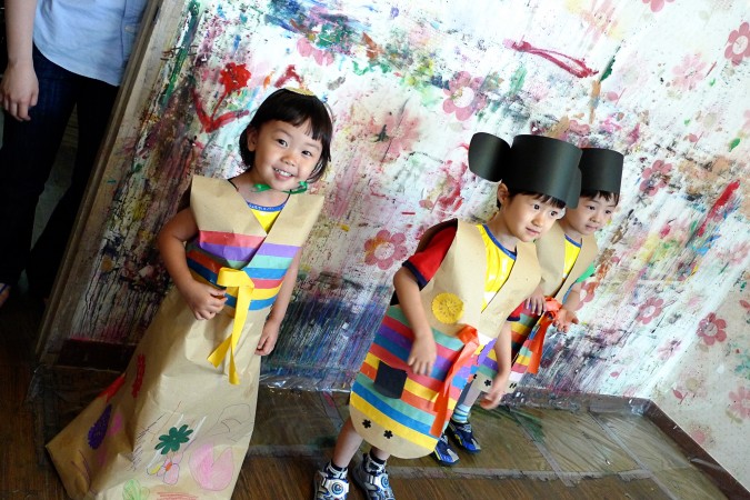 미술학원 가는 날. 이번에 가장 잘한것이 이 미술학원에 등록한거다. 내가 봐도 재미있는 프로젝트들. 이번엔 한지를 직접 오려붙여 만든 종이 한복을 입고 3초 패션쇼를 한다.