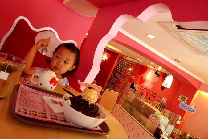 엄마 따라다니면 이렇게 지나가다 헬로키티 까페에도 데리고 와 주거던. 비록 음식맛은 없어도, 키티모양의 소파와 쿠션엔 때가 꼬질꼬질해도 승연인 좋은가보다.