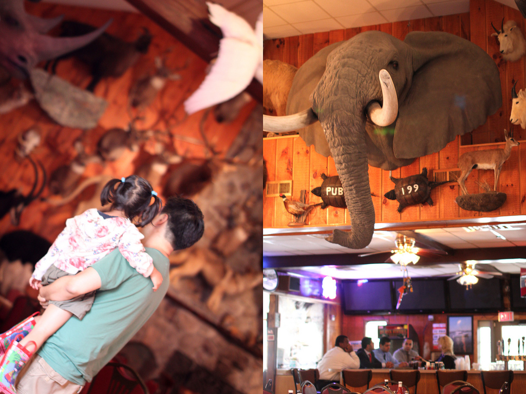 멀다고만 생각했던 시푸드 레스토랑 Pub 199이 마침 여기에서 가까워서 점심을 여기서 하기로 하고 12시 땡 열자마자 들어갔는데, 이렇게 밝은 대낮에 텅텅 빈 모습을 본 적이 없어서 이 많은 박제 동물들을 보고 깜짝 놀랐다. 벽들과 천정이 모두 다양한 동물들로 덮힘.