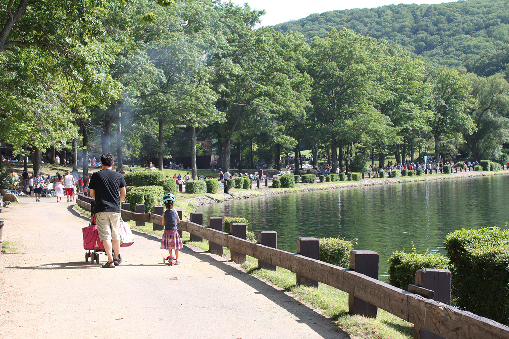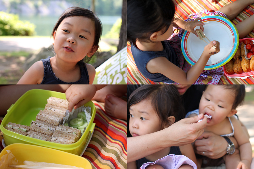 날씨도 너무 더운데다 오랫동안 운전해 올라간 Bear Mountain엔 의외로 스페니쉬 뽕작으로 시끌벅적한 분위기라 (우리같이 뒷뜰 없는 사람들만 이런데 와서 죽치고 논다 이럼서..ㅠㅠ) 내가 머릿속에 그렸던 그런 그림은 안나왔지만 내가 가방에서 꺼내 도시락을 쫙 펼치자 승연이가 흥분하며 너무 좋아했다.