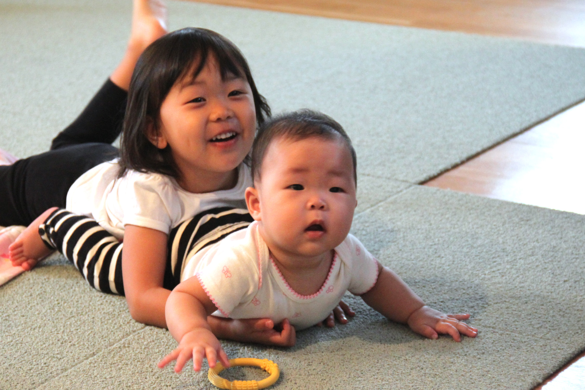 승연이가 승빈이 울음소리에 깜짝 놀랬나보네.. 큰언니라도 아직은 애기니까^^