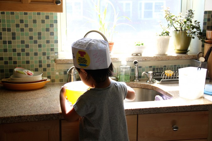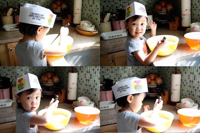 학교에서 만들어 온 맛없는 Matzah를 저녁으로 과까몰리에 찍어 먹고 그담날은 올리브 오일 케익을 만들었다. 이젠 키가 제법 커서 낮은 의자에 서서도 어느정도 작업을 할 높이가 되었다.