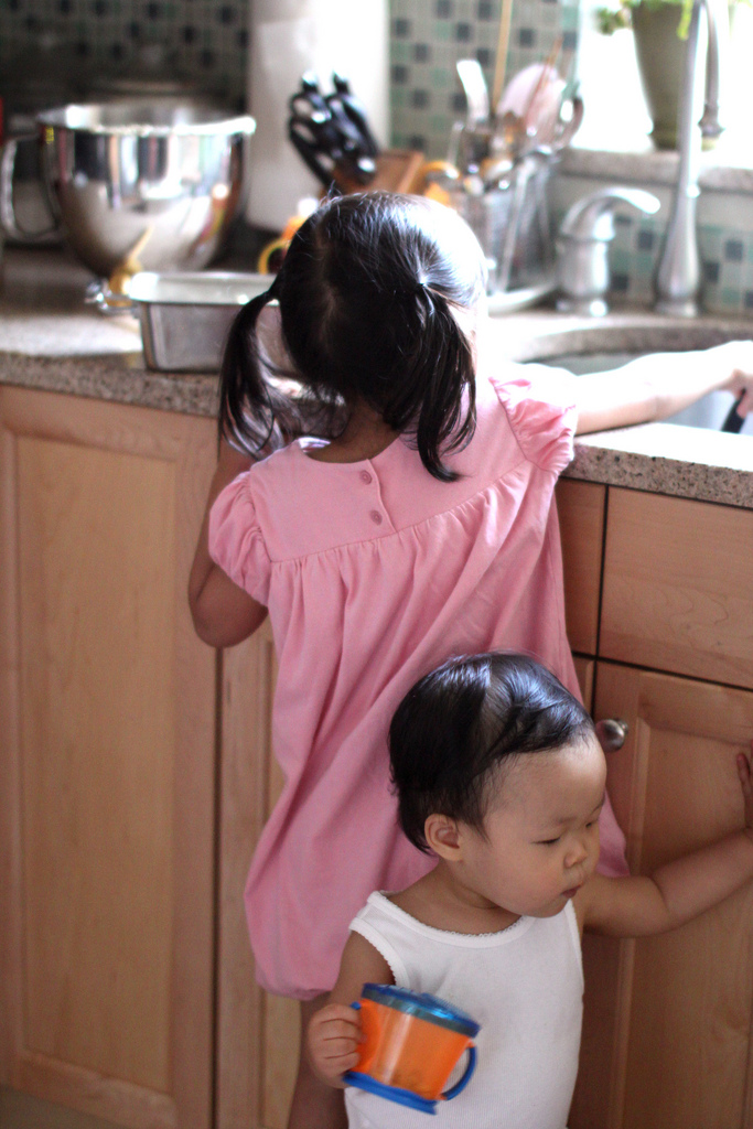 아웅~ 머리 양갈래 따고 하나는 오븐앞에, 하나는 오만군데 돌아다니는 아가들~ 너무!!!!!귀여워요~