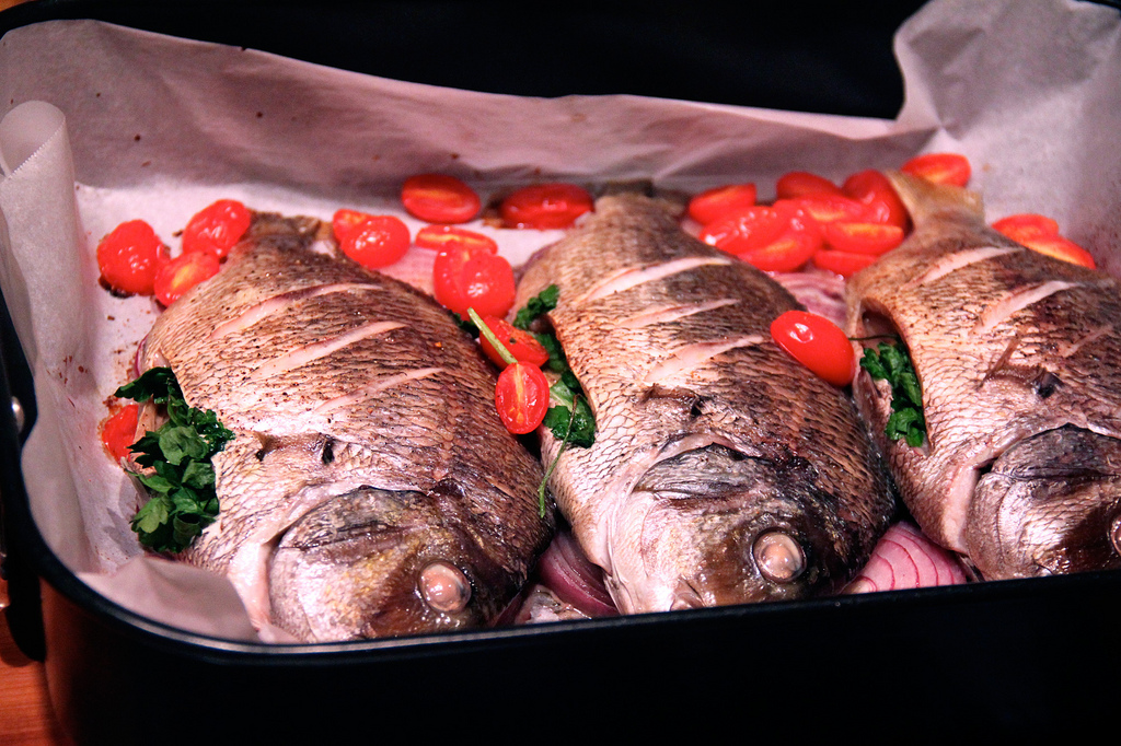 이날 저녁은 남편 큰아버지가 잡으신 도미 세마리를 해동시켜서 오븐에 구워 먹었다. 식구 많을때 다 먹어버리려고.