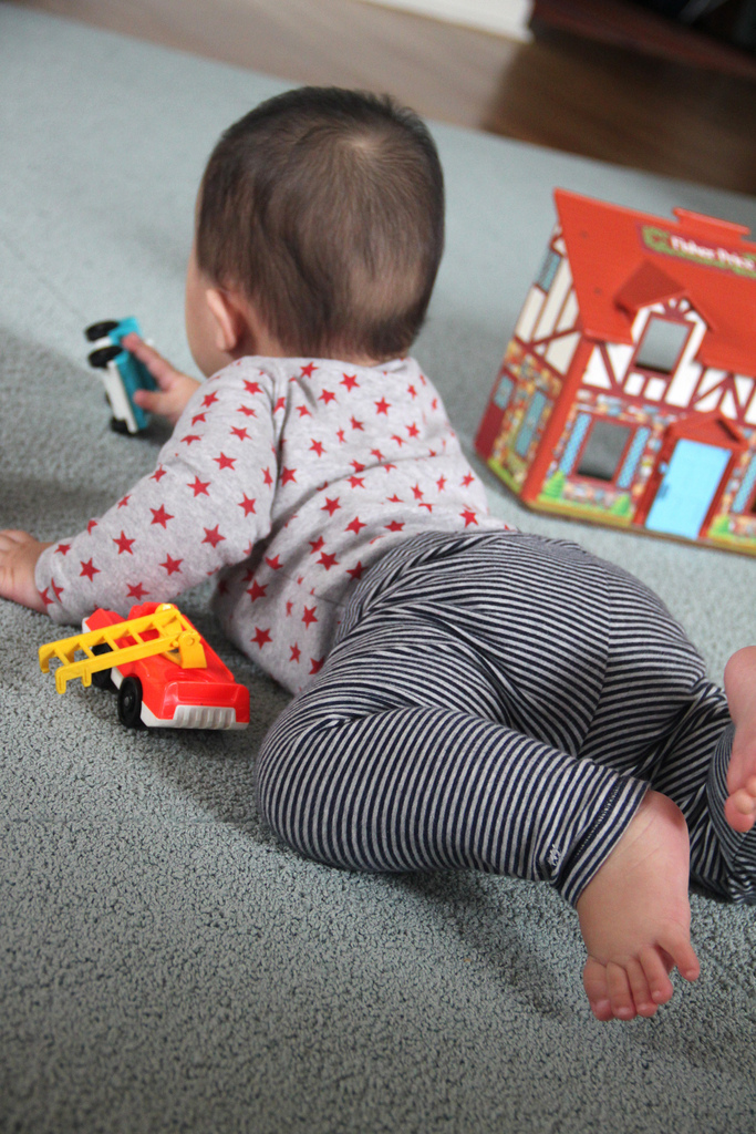 언니의 놀이세계로 꿈틀꿈틀 데굴데굴 기어 굴러가는 승빈. 마음 여린 승연이는 동생 손에 쥐어진 장난감을 뺏지는 못하고 내가 가서 승빈이를 옮겨주길 바라는 마음으로 온갖 호들갑을 떨며 말로 표현을 한다.