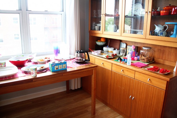 한국 오기 3일전이라 완전 정신 없고 난 마지막주에 후두염까지 걸려서 정신을 바짝 차리지 않으면 견딜수 없을 정도로 힘든 한 주였다. 다행히 몇주전부터 배너와 메뉴등을 다 계획해뒀기에 행동으로만 옮기면 됨. 핑크와 주황색을 컬러테마로 한 오후 티파티로 함.