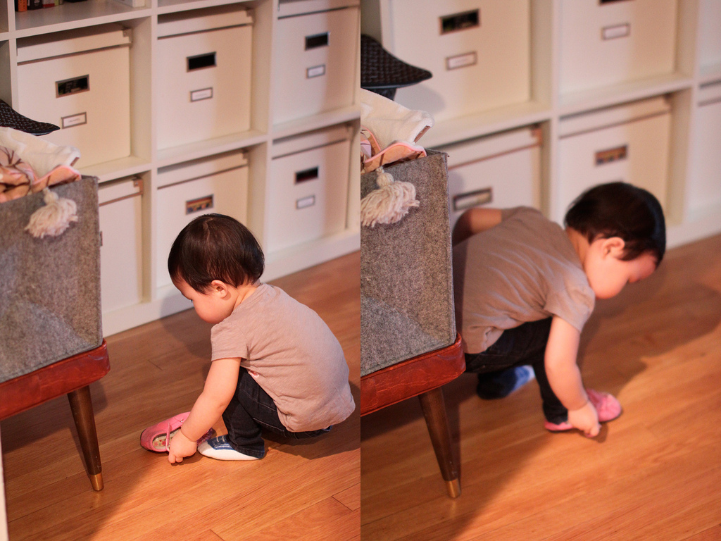 신발 신자 하면 양말(샥~스)을 먼저 챙기고, 양말을 신기면 자동으로 신발(슈~즈)을 챙김. 어딜 갔다 들어오면 바닥에 앉아 신발 벗는 시늉까지.. 짜슥, 많이 컸어!
