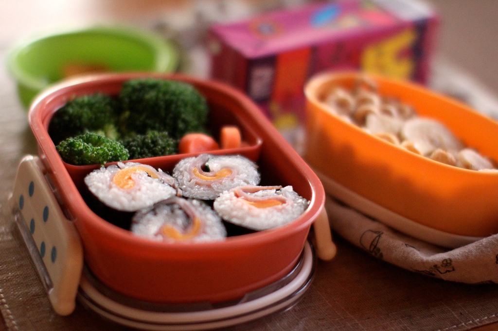 LUNCH/// 햄앤치즈 미니김밥, 브로콜리 데친것, 당근, dried mangoes