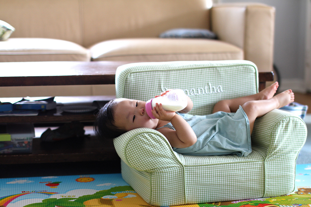 소파에 누워서 혼자 우유병 마시고?! 있는 모습도~~