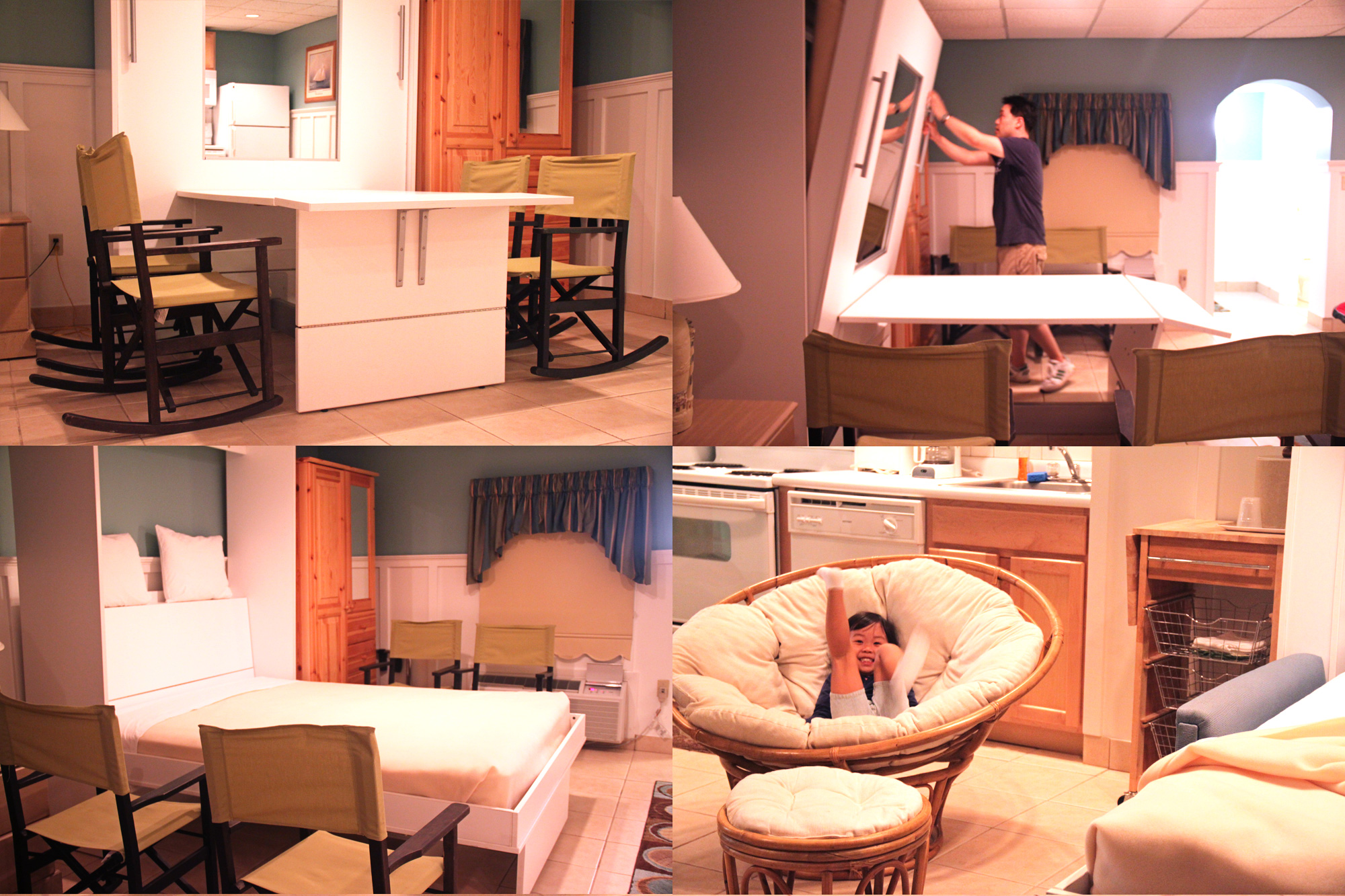 오프시즌의 바닷가 동네 벙갈로. 일부러 부엌 있는곳을 했더니…승연이는 기대만빵을 하고 들어갔다가 침대 없다고 울고불고 집에 간다 난리를 치고…하지만 아빠가 짠~ 하고 침대를 펴주자 기분 업.