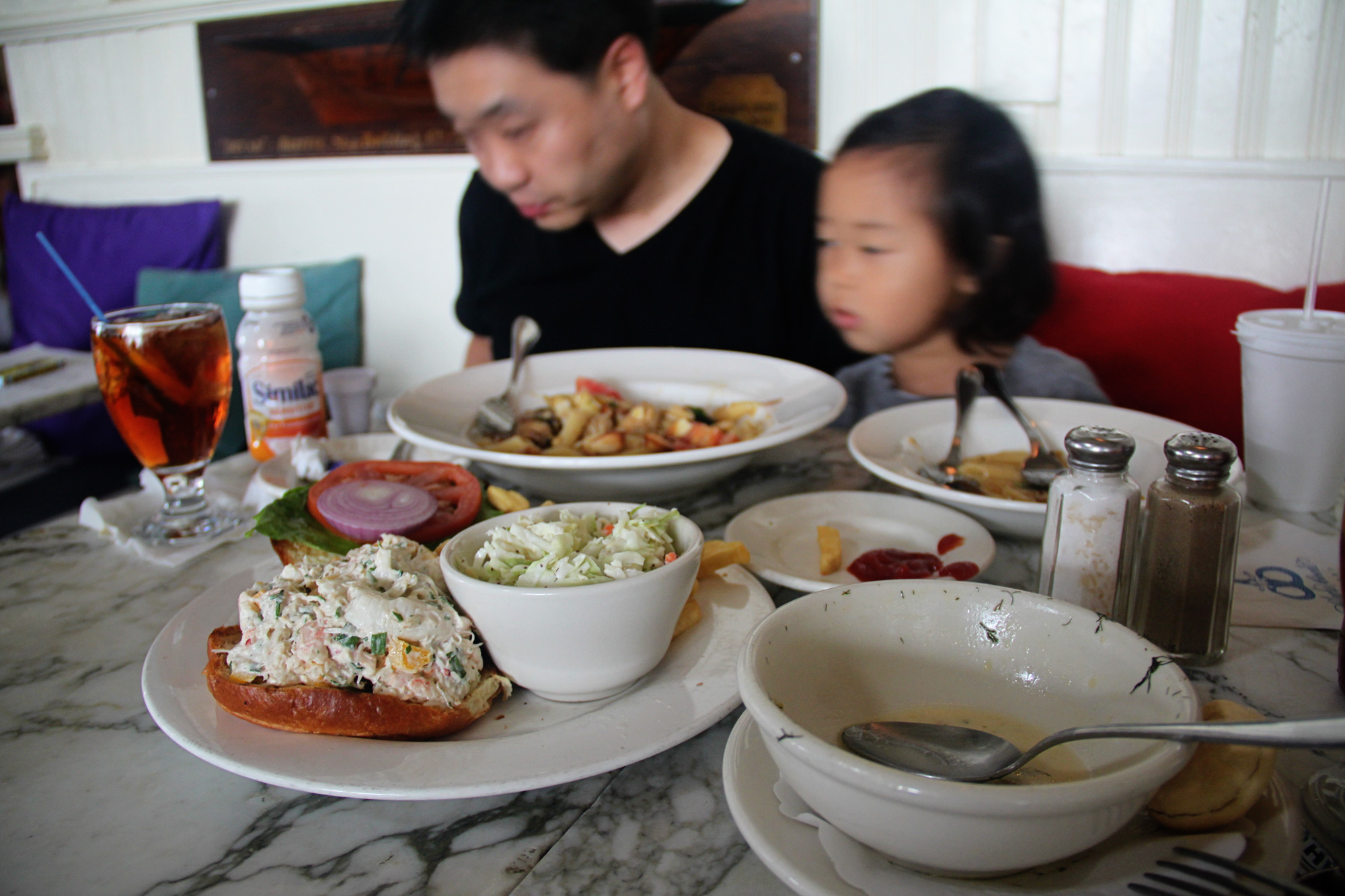 우리는 뉴잉글랜드 클램차우더와 푸짐한 점심을…