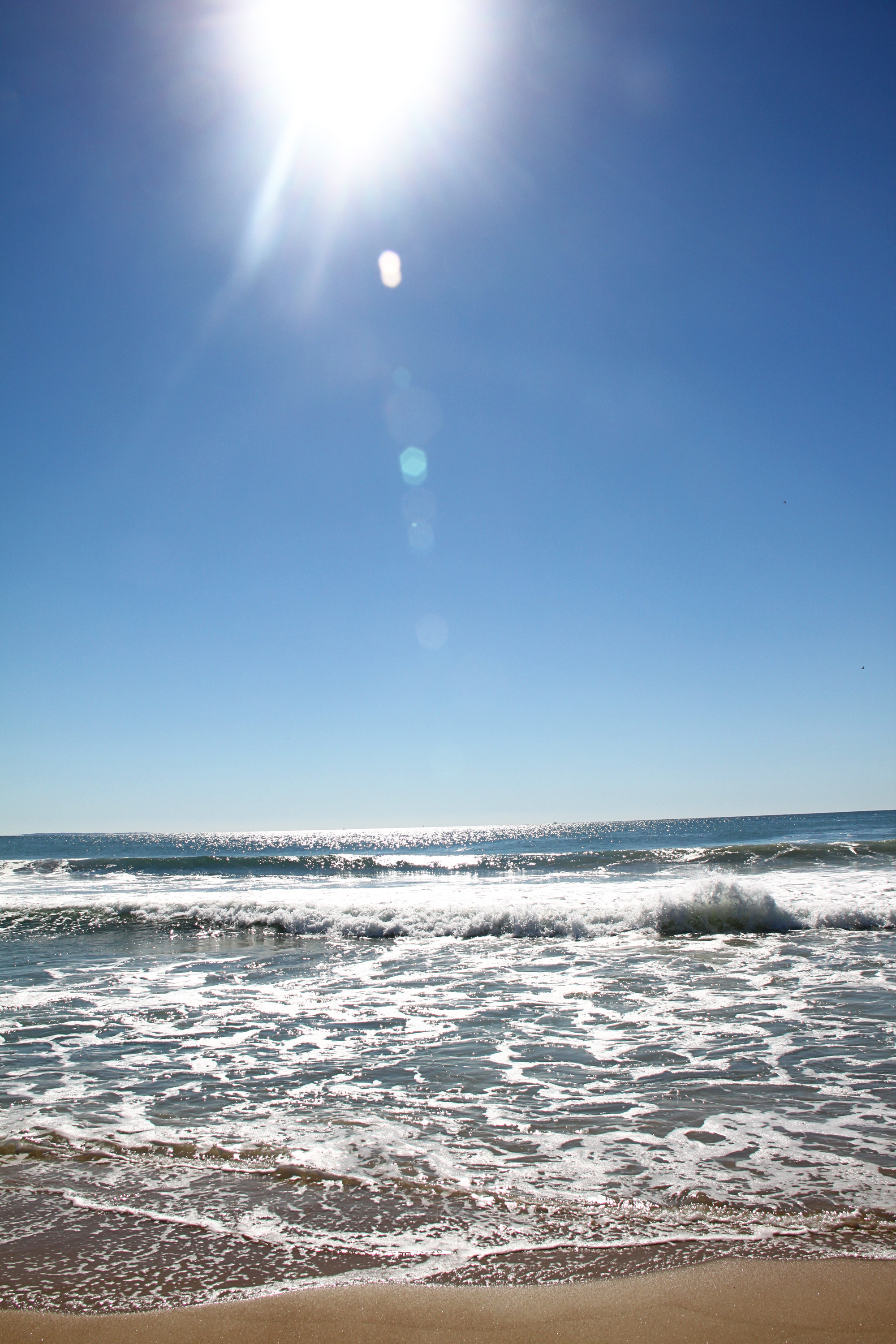 비가 개이고 구름 한점 없는 가을 하늘 아래 바다.